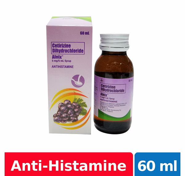 Alnix Syrup is a colorless to slightly yellow-colored, clear syrup with fruity grape odor, and sweet grape taste. This medicine is used for the relief of symptoms associated with: allergic rhinitis such as sneezing, runny, itchy nose; and itchy, watery eyes; allergic conjunctivitis; skin symptoms of allergy such as itch and rash.