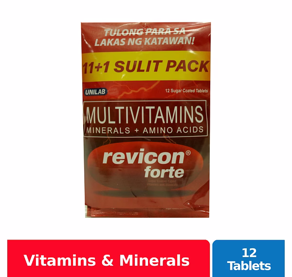 Revicon Forte Tablet is a yellow-orange, elliptical-shaped, sugar-coated tablet. This is a nutritional supplement to provide essential vitamins, minerals and amino acids for general good health, to help promote physical vigor and help improve stamina during physical activity.