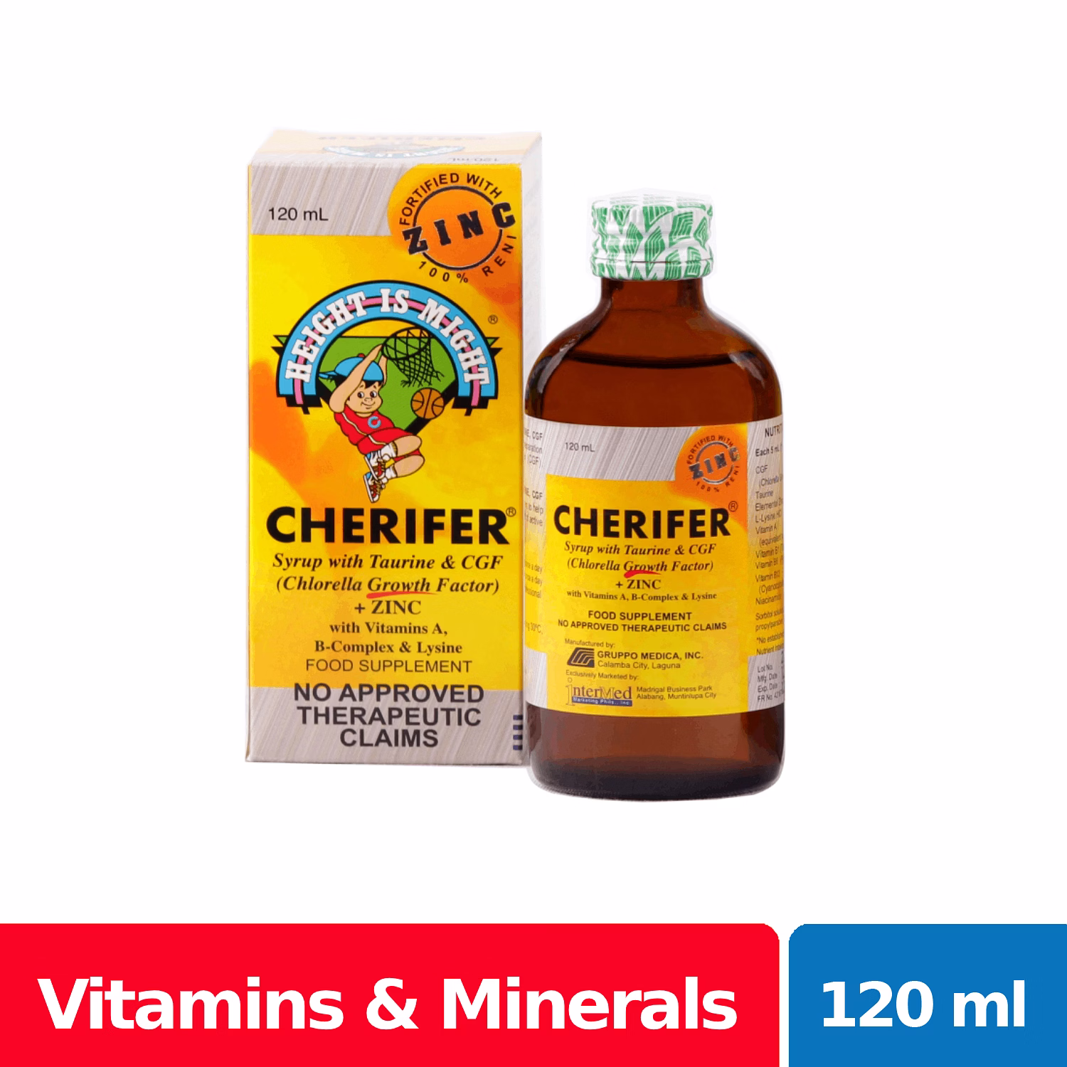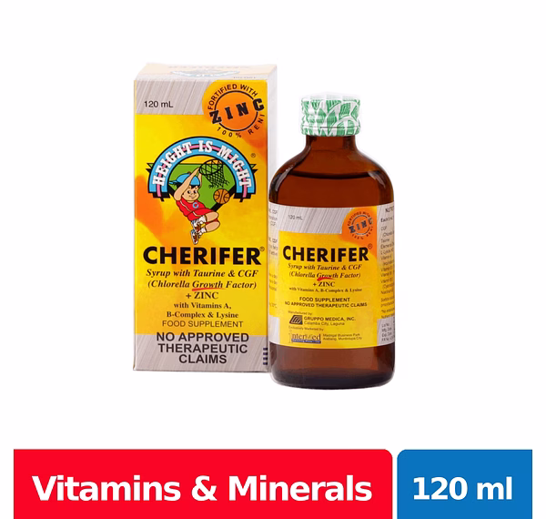 Cherifer Syrup with Zinc maximizes children’s growth potential through Chlorella Growth Factor while building up a stronger immune system for them with the help of Zinc. It also has Taurine for developing better visual and motor skills, and sufficient amounts of B-complex vitamins that help in the absorption and utilization of proteins, fats and carbohydrates in a child’s diet.