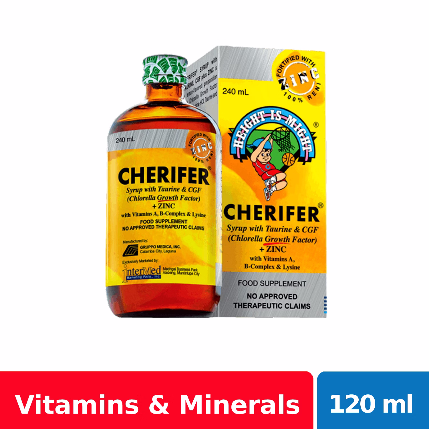 Cherifer Syrup with Zinc maximizes children’s growth potential through Chlorella Growth Factor while building up a stronger immune system for them with the help of Zinc. It also has Taurine for developing better visual and motor skills, and sufficient amounts of B-complex vitamins that help in the absorption and utilization of proteins, fats and carbohydrates in a child’s diet.