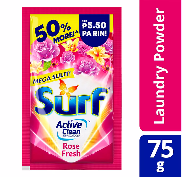 Surf Powder detergent powder with fabcon and Active Clean Technology that provides brilliant clean and fragrant clothes to give unique and fragrant laundry experience. Can be used semi-automatic washing machine and hand wash.