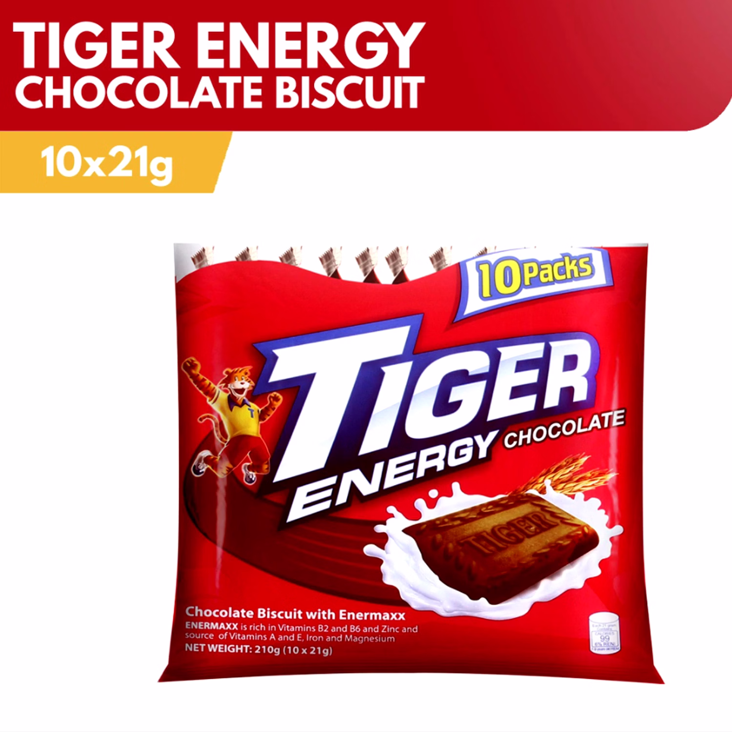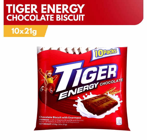 Tiger Energy Plain Sweets Chocolate Biscuit 21gx10s