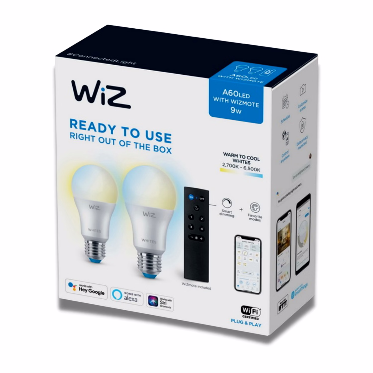 WiZ Wi-Fi Tunable White A60 LED Bulb 2pcs & WiZmote